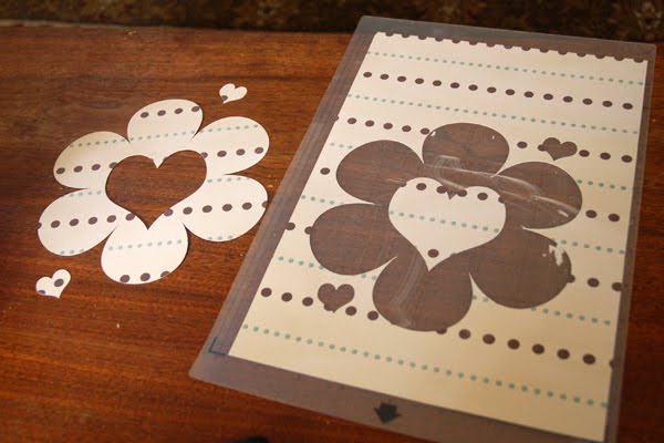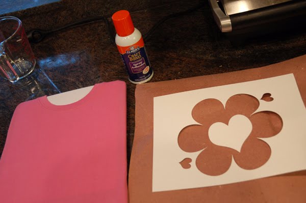 First, I used Illustrator to create a design and my SilhouetteSD to cut out a stencil. In this case, I asked my 4 year old niece what her favorite shape was, and she said “Princess!” I told her princess isn't a shape, so she said she was stuck between hearts and flowers. Works for me!