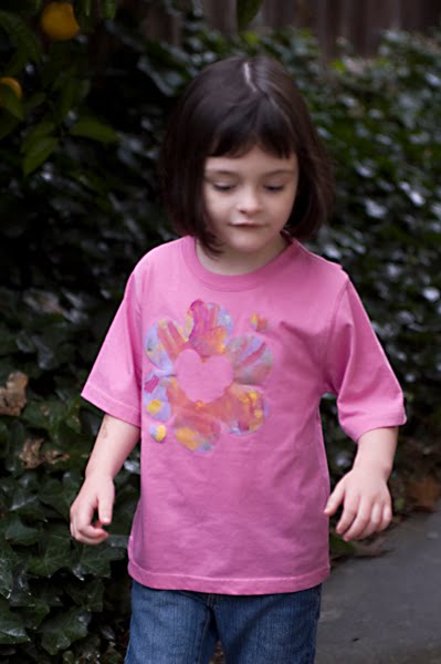 And the happy recipient kinda sorta modeling the finishing shirt! She *is* just a four year old, so this was the best I could get out of her! LOL