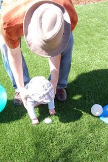 I think that the biggest difference, when looking at Max's Easter vs. my childhood Easters, i s church. We are not currently a “church on Sundays” family, because currently, our only morning off as a family is Sunday, so we think that spending that time together is more important right now, and God understands that. When I growing up, we went to church pretty much every Sunday, and Easter Sunday meant a new dress, probably a hat or gloves (or some similarly antiquated accessory) and a basket for the egg hunt after church. Max's first Easter was brunch at Katie's house with an egg “hunt” in the yard (read: putting egss on the ground and hoping he'd pick them up! LOL)