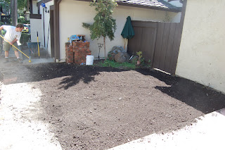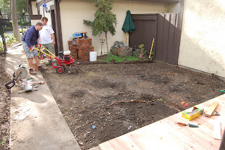 And here's what I'm really excited about… this is the other side of the walkway… we're going to build up a planter box that's about 2′ tall, and I'm going to plant a kitchen garden! We're using the Square Foot Gardening method and I'm really excited about it! This is next weekend's project, so hopefully I'll have some stuff planted soon! I'm sure you can expect lots of blogging about it as it progresses and (hopefully!) we start harvesting the yumminess!