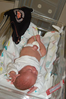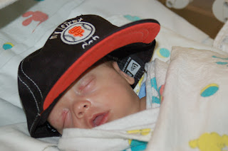 We played dress-up… this hat is part of Max's coming home outfit… we think it's going to be a while before it actually fits.