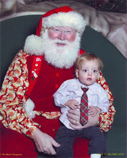 Wow look how much he has grown in a year ๐ He is adorable!! My oldest grandson (now 11) would make me sit on Santa's lap and wouldn't cry. But I think Santa did ๐