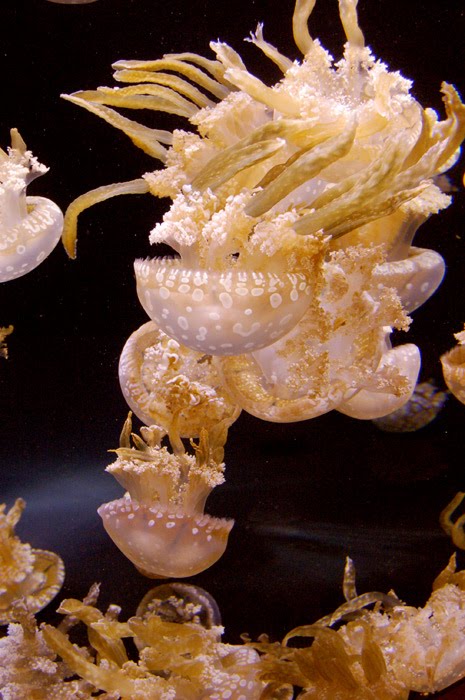I think the jellyfish might be my personal favorite… I could sit and watch them for HOURS… the coolest thing was that Max knew what they were! We walked in to the exhibit and he exclaimed “Jellyfish!” He has a plush jellyfish that I made for his first birthday party, but to translate that little yellow bit of fleece into what he saw in front of him is pretty darn impressive to me! I'm totally fascinated by the fact that they swim in an, what seems to me, upside down direction… I thought about rotating these photos, to make them look “right” but decided I should put them here the way they actually are! LOL