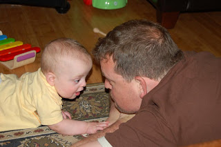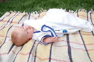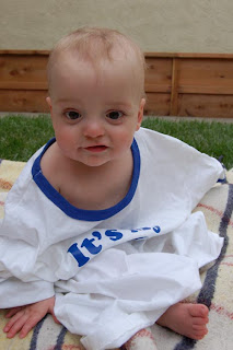 We have a pseudo-tradition in our family of an official “birthday shirt” My mom started it when I was born. She had a shirt made, that said “Birthday Girl” and the plan was to take a picture wearing the shirt every year on my birthday… she failed to plan a bit, and I outgrew the shirt by the time I was about 12, but the idea lived on! I actually had this shirt made for Katie's baby shower, before we knew if Faith would be a boy or a girl… once she arrived, Katie wanted a more gender specific shirt, so this one, with it's generic “It's my Birthday” sentiment was regifted to Max at our baby shower! He's got a *little* room to grow, dontcha think?