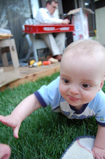 He was eventually willing to wait patiently while Daddy did some building, but he decided my camera was the next best toy!