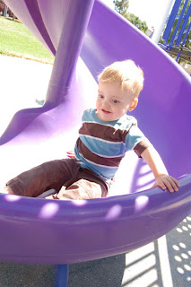 We don't get to the park as often as I'd like, so Max really goes all out when we're there! Interesting to note, since the last time we went to the park, he has figured out slides to the point that he can get himself to the top, get properly oriented and slide down, all by himself! He runs around the playground like a crazy person, swings for 45 seconds, down the slide, across the bridge, dig in the sand, back to the swings, tries to climb the playhouse, digs in the sand, repeat.