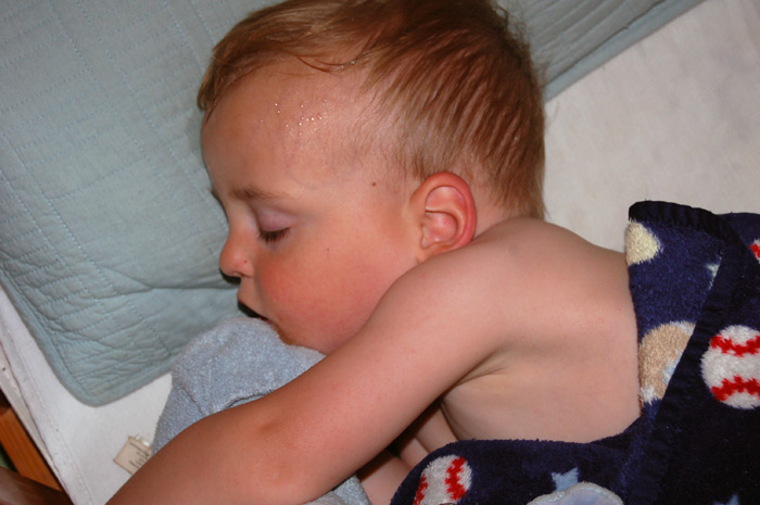 I had most of this past week off work (vacation and slow days) so I was all sorts of thrown off, with Thursday being the only day I worked this week! All day, I thought it was Tuesday… after Max was in bed (and I was plugged in for the night) I sat bolt upright “OMG! It's Thursday!” and Jamie volunteered to go snap a pic of our sleeping (ahem) angel.
