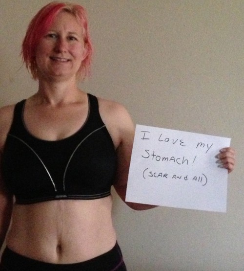 But damn, it's hard! Even as I button up the size 12 jeans that haven't fit me in years, my eyes drift to the lumps that, while smaller, are still showing over the top of said jeans. I see my belly getting flatter, but I still eyeball my thigh jiggle when I'm getting dressed.